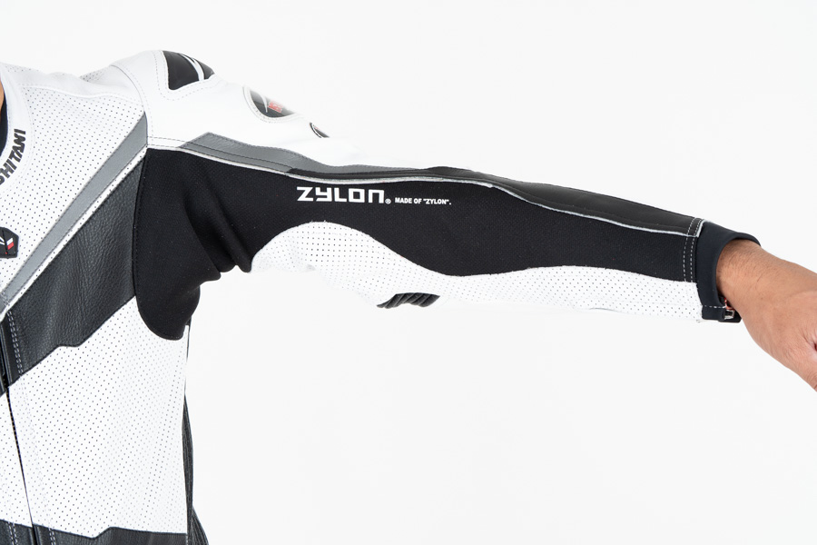 ●素材:〈表〉ホルス牛革(撥水加工)、ザイロンニット〈裏〉ポリエステル100%(メッシュ) ●カラー:①ブラック②ホワイト ●サイズ:M、M/L、M/LL、L/M、L、L/LL、L/2W、L/3W、L/XL、LL/L、LL、LL/XL、LL/2W、LL/3W、XL/LL、XL ●仕様: 〈鎖骨、腰、尾てい骨〉Kフォームプラス 〈肩、肘、膝〉CEプロテクター(LEVEL1) 〈袖、内股、膝裏、〉大型ザイロンニット〈襟後、袖口〉ニット( ナイロン58% ポリエステル37% ポリウレタン5%)〈背〉5mm 厚スポンジ( ポリエチレン) ※非プロテクター大型ザイロンニット 〈裏地〉洗濯が可能な脱着タイプ ●ニット仕様特許:PAT2602201●MFJ公認規格レザースーツ