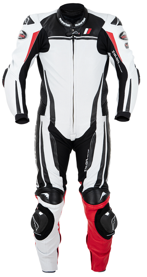 クシタニのレザースーツには、肩・肘・膝の各部位にCE規格のプロテクターを装備。衝撃吸収性と耐久性を確保しつつ、部位ごとの特性に応じてCEレベル1・2を最適に選定。スーツ全体の剛性や可動性を損なうことなく、安全性と運動性能の高度な両立を実現しています。