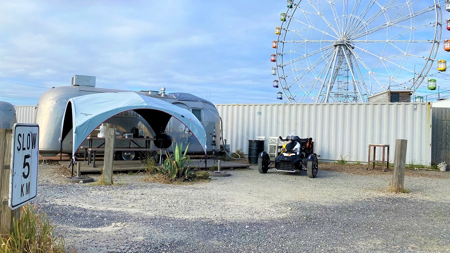 グランピングではテントを張る必要がなくて、宿泊場所(部屋)はすでに建っているから楽!ワイルドビーチ木更津では、お洒落なテントやトレーラーハウスに宿泊可能。(コテージもあるよ!)今回私は、初のトレーラーハウスをチョイスしました!キャンピングトレーラーって初めてだからわくわくするね。