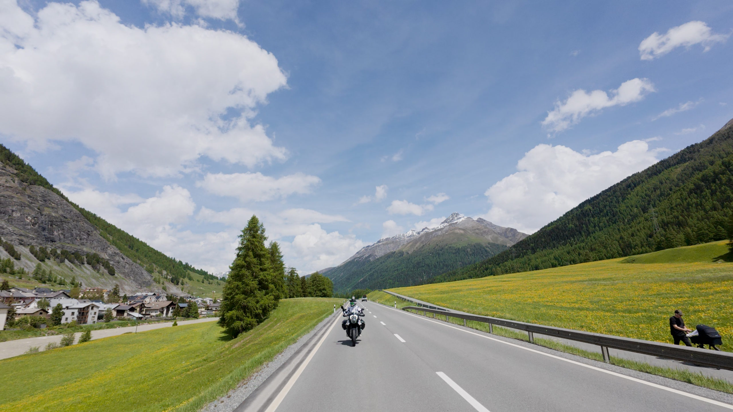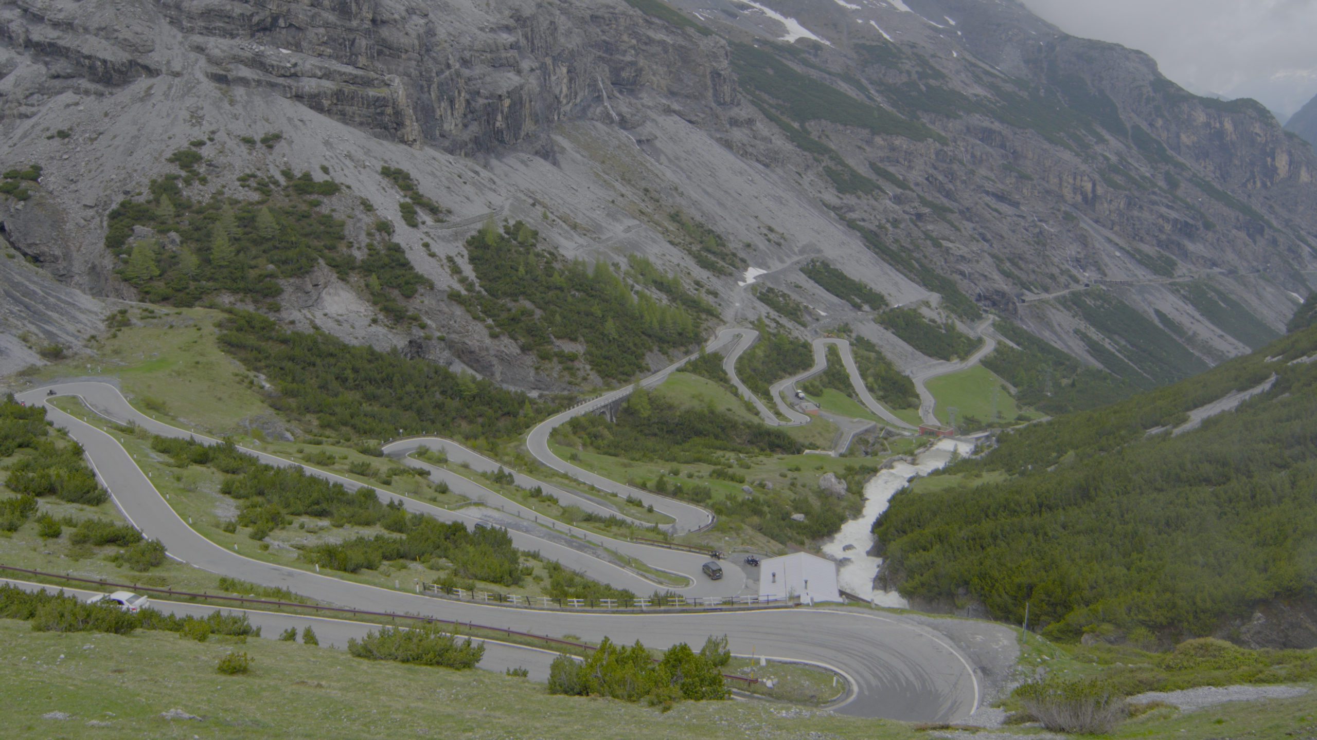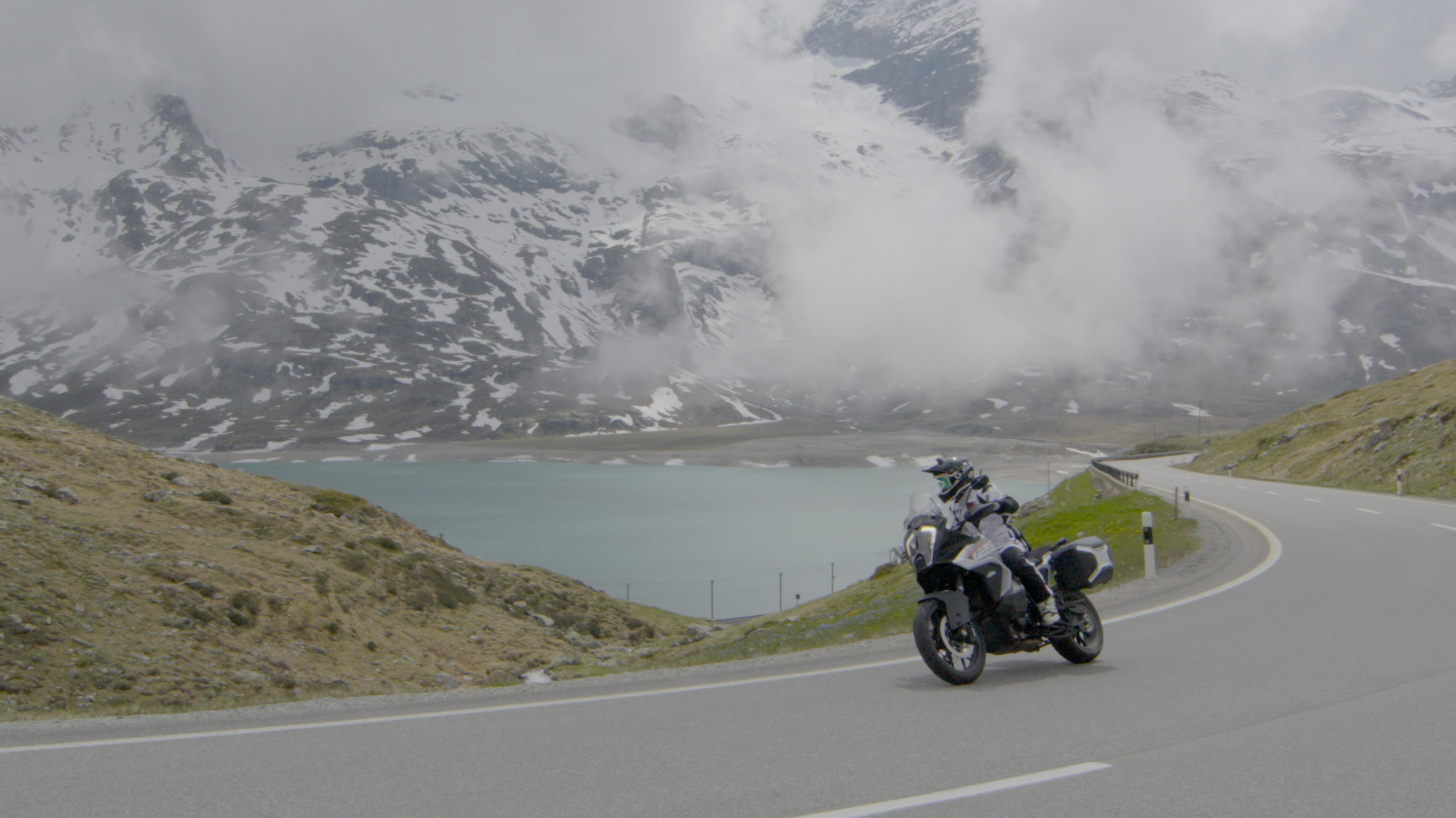ツーリング2日目、標高の上昇とともに気温は容赦なく急降下していく。イタリアの有名スポット、ステルヴィオ峠では5℃まで低下し、雨も降り始めた。頂上付近では雪が深々と積もる悪条件となり、撮影作業と並行しながらの峠越えで、時間の経過とともに過酷さが倍増していく。疲労困憊、低体温症の危険、視界不良。すべての悪条件が重なった極限状態だった。