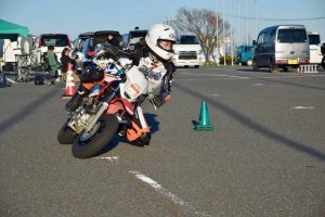初心者さんが、いきなり大型バイクでヒザ擦り練習をするのは大変そう。