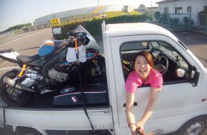 軽トラにS1000RRを載せて、早朝の筑波サーキット(TC2000)に到着!