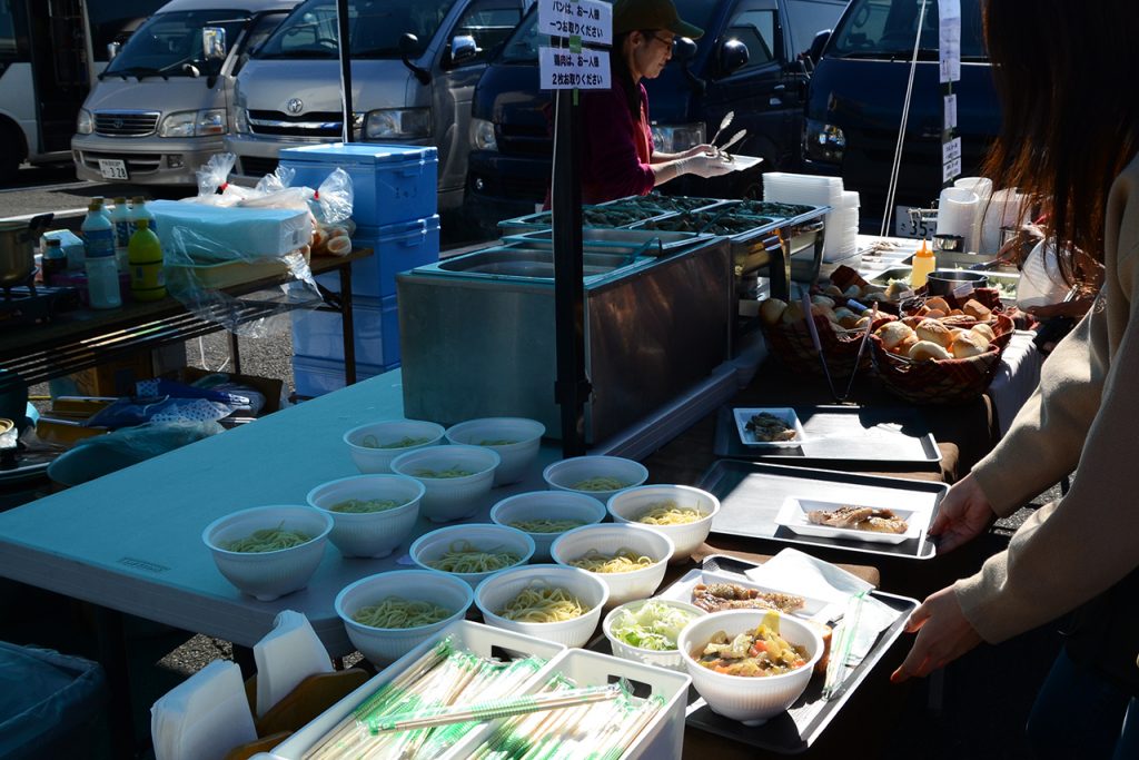 この日のお昼ごはんはほかほかのケータリングでした。炭火で焼かれた鶏肉にサラダ、スープパスタにパンと豪華。昼間はぽかぽか陽気だったとはいえ、11月の気温の中のサーキット。とても体が温まるランチです。