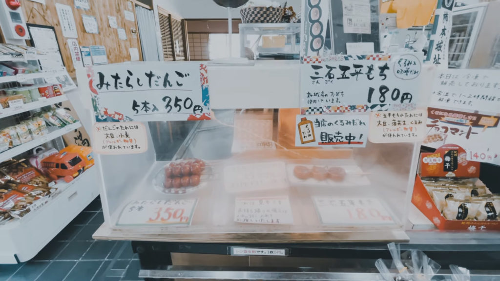 胡桃だれがたっぷりとかかった「三石五平餅」は、みたらし団子の様な形をしていてモチモチとした食感が楽しめる。